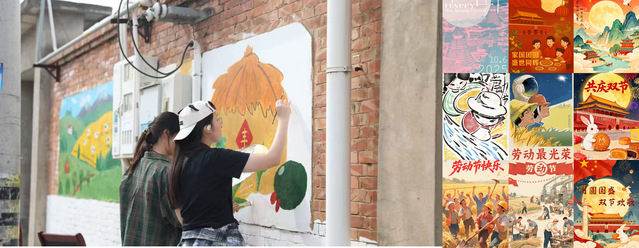 双线联动践初心,通过“学习强国”“网络中国节”专栏,创作节日主题动画画报与短视频,活化传统节日文化传播;线下发挥专业特长,赴盛兴佳园、时尚花园等多个社区开展彩绘志愿服务活动,用画笔为社区添彩、为城市建设助力,在专业实践中践行党员服务群众、奉献社会的初心。