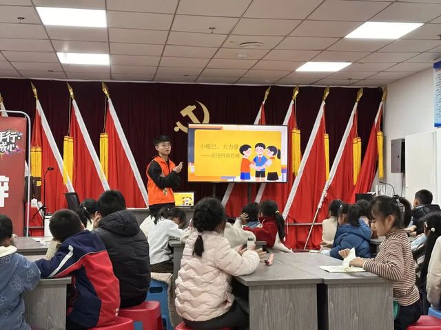 寒假期间,大数据2502班柯洋鉴投身贵阳“共青团伙伴计划”托管志愿服务,为社区孩子带来一堂特别的课。他敏锐捕捉网络热梗对青少年的影响,以《小嘴巴,大能量——拒绝网络烂梗》为题,用大数据专业的理性思维,教孩子们辨别语言陷阱。“哥哥,以后我不乱说‘鸡你太美’了!”童言童语让他倍感欣慰。课后,他又俯身辅导作业,耐心讲解难题。他用专业与温度,为孩子们筑起一道清朗的网络防线。