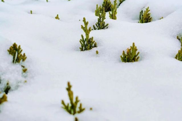 白雪藏绿意,寒冬终有归期。