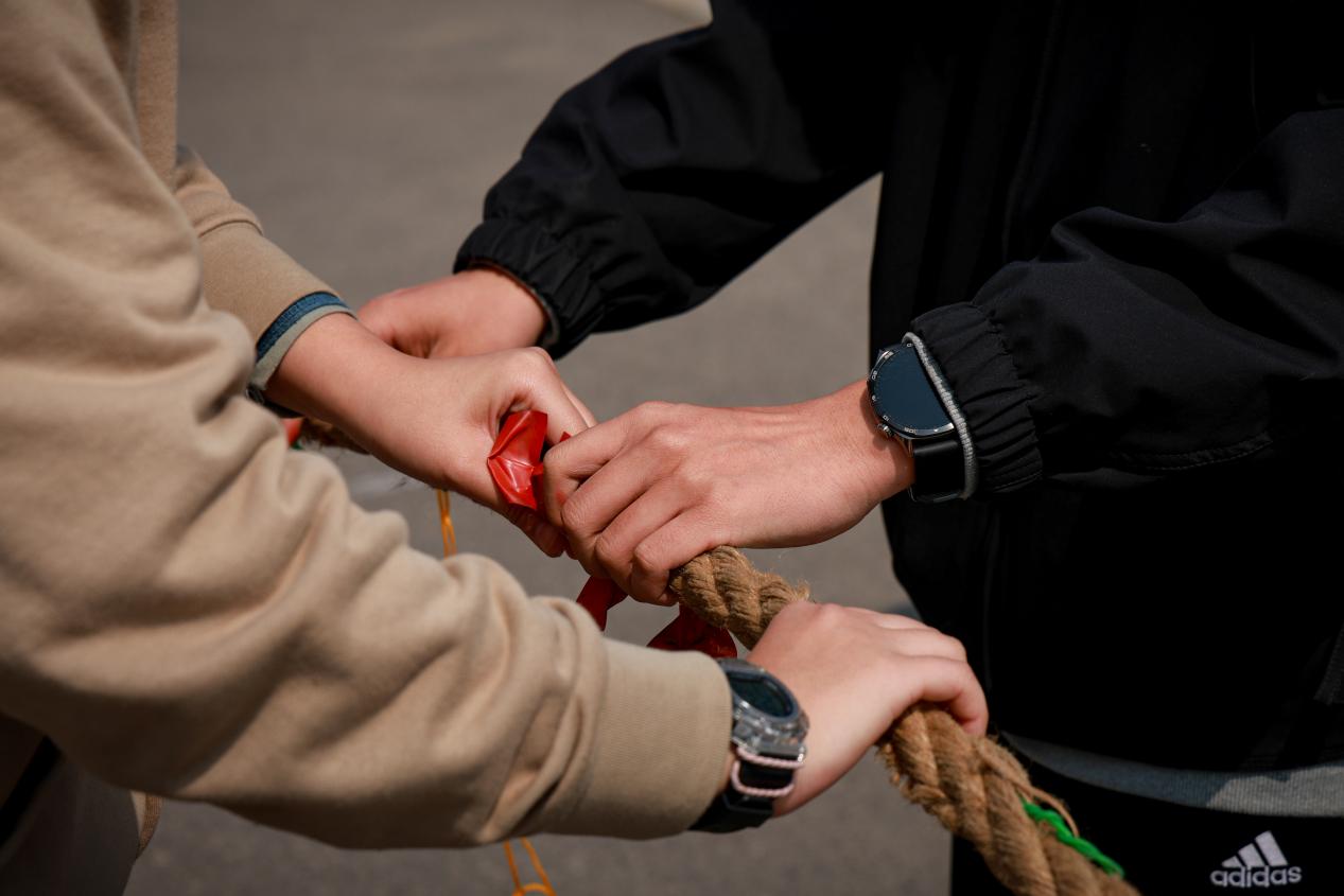 哨声划破长空,比赛正式打响。同学们紧握长绳,身体后倾成一道坚毅的弧线,双脚如钉扎进地面,咬紧牙关的侧脸写满倔强。每一次发力都凝聚着不屈的意志,每一次拉锯都迸发着团队的默契。汗水顺着额角滑落,却无人松劲。